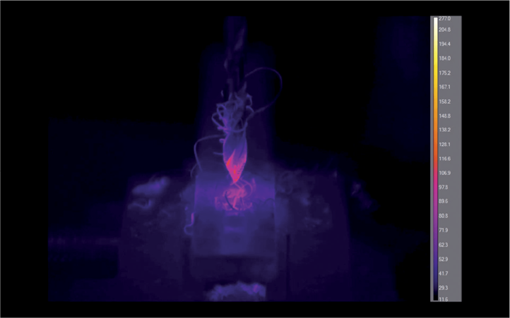 Slika 2: Temperaturni nivoji v konici spiralnega svedra Smart Step