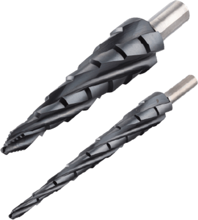 Spiralni svedri Smart Step imajo posebno vrtalno konico, kjer se premer svedra stopničasto povečuje.